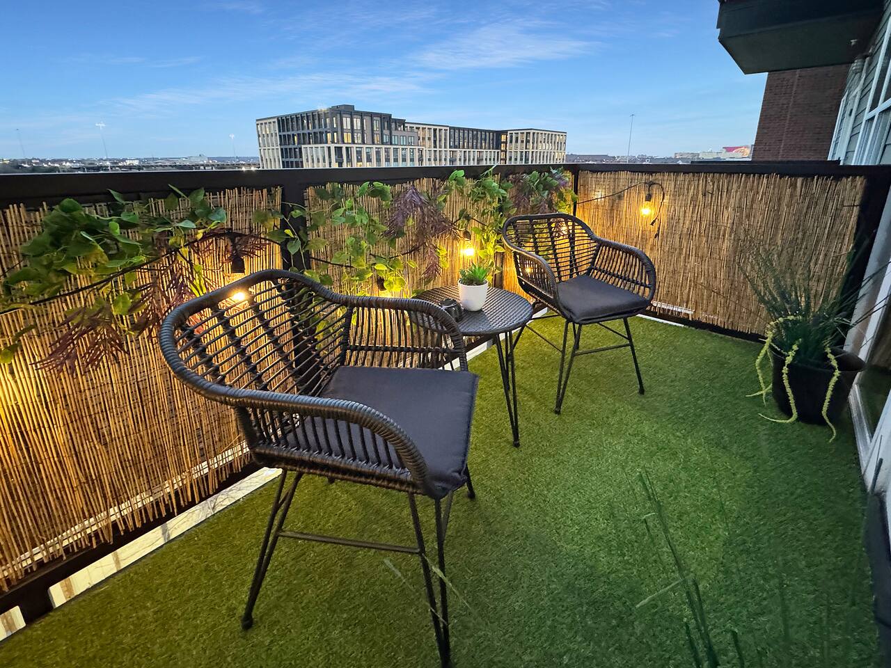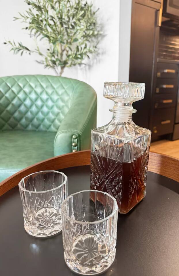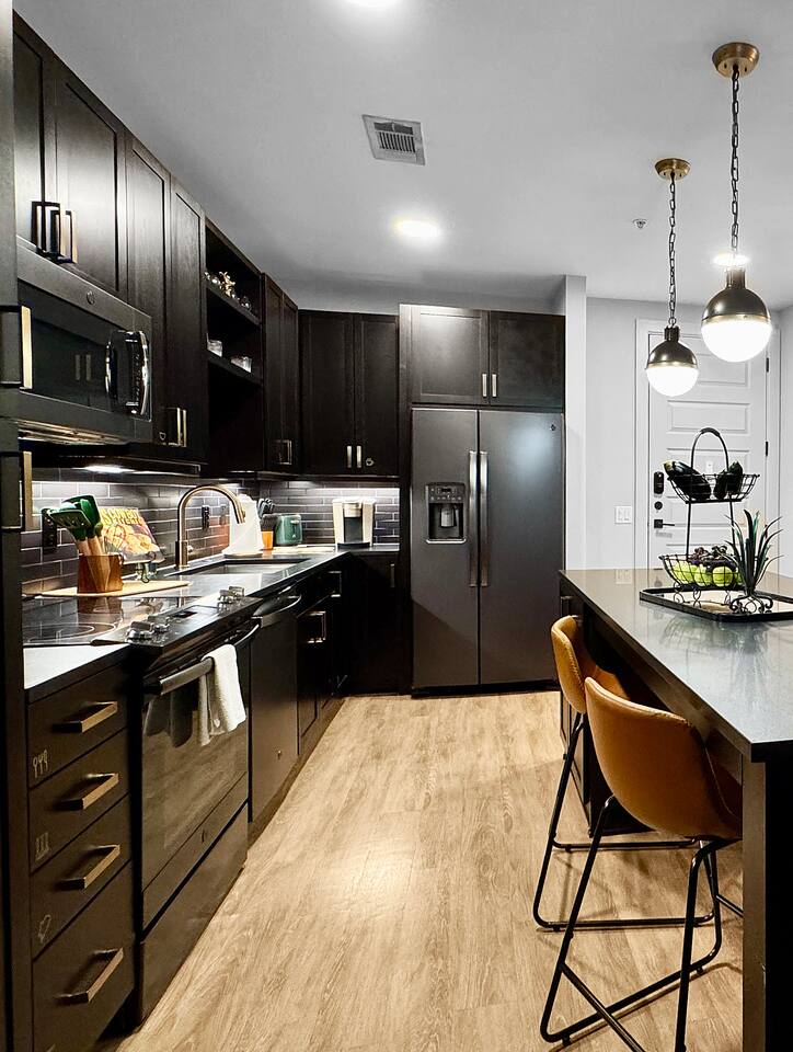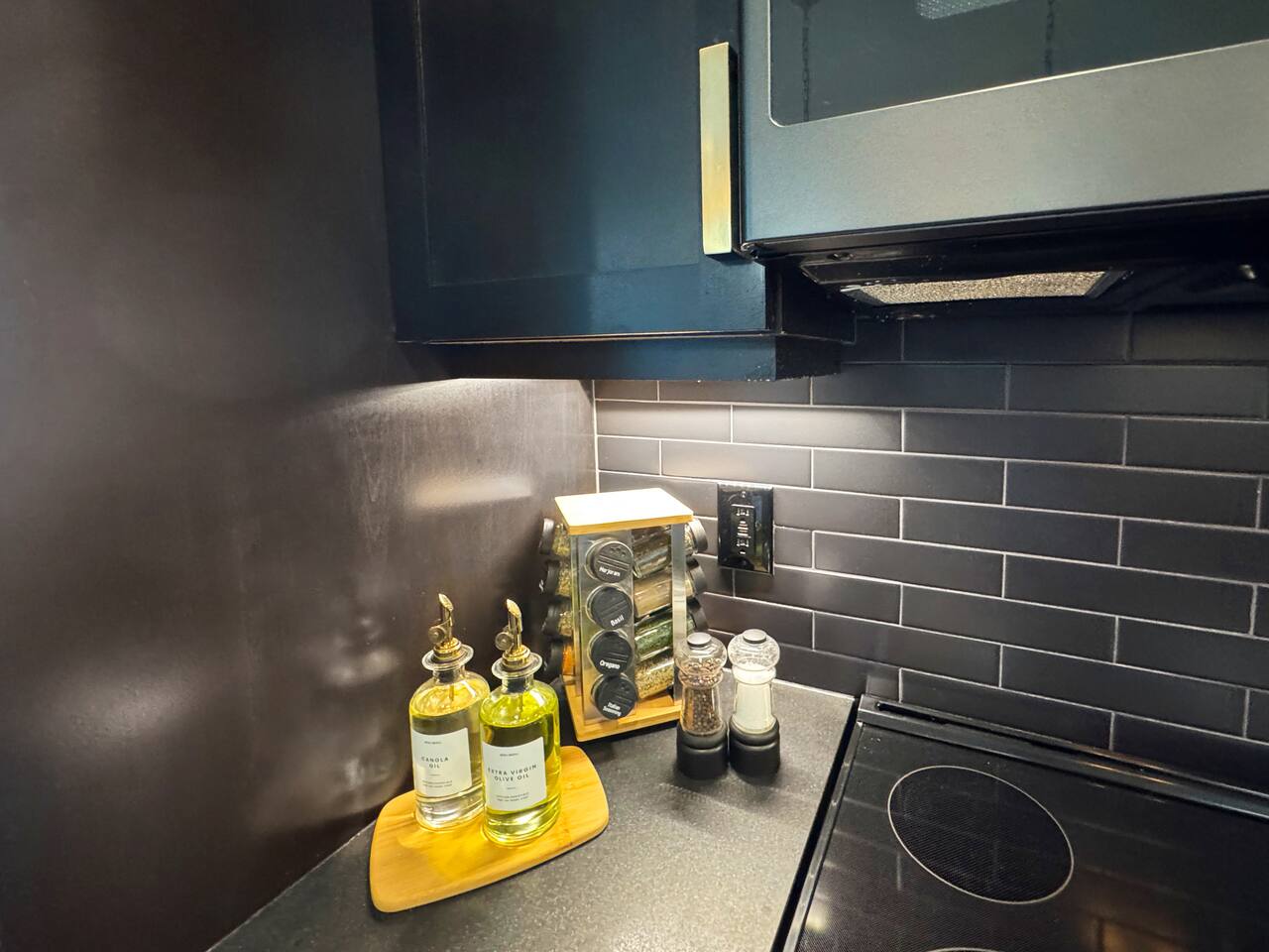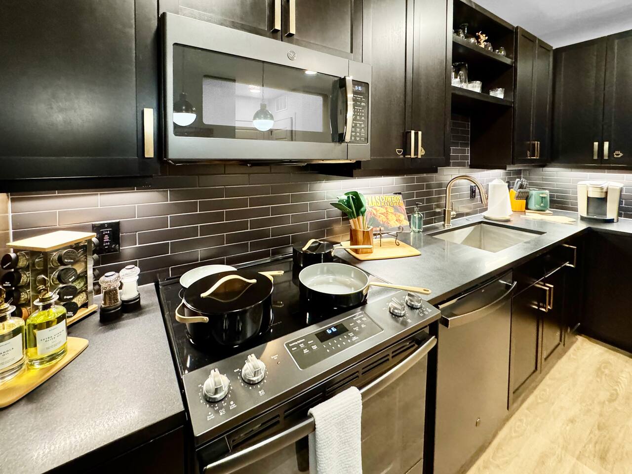 The Space Curated Decor – A fusion of mid-century modern and Texas chic, featuring rich leather seating, deep wood tones, and bold accent pieces. Spacious Living Area – Sink into the plush leather sofa or the unique emerald green armchairs while streaming your favorite shows on the wall-mounted Smart TV. Work-From-Home Ready – A cozy, library-themed office nook offers the perfect workspace with high-speed WiFi Chef’s Kitchen – Fully equipped with black cabinetry, sleek countertops, and high-end appliances, perfect for cooking or enjoying a cup of coffee from the Keurig station. Cozy Bedroom Oasis – Unwind in the king-sized bed with designer bedding, set against a striking forest mural backdrop, adding a peaceful, nature-inspired touch. Windows open and fester a black-out roller shade and blackout noise damping curtains. Spa-Like Bathroom – Featuring a walk-in glass shower, modern black vanity, and hotel-quality toiletries, and BaByliss Pro Hair Dryer. Private Balcony – Enjoy stunning city views of Reunion Tower, The Omni Hotel, The Margaret Hunt, Bridge, and The Texas State Fairgrounds, all from your outdoor seating area, the perfect spot for morning coffee or evening cocktails. In-Unit Washer & Dryer – Stay fresh with a stacked full sized washer & dryer, making long stays effortless. Why Stay Here? One Free Parking Included Secure, High-End Apartment Community Walkable to the Best of Deep Ellum Professionally Hosted by CoHosted Properties Book now and experience Deep Ellum in style, comfort, and luxury! See our other units within this amazing property.